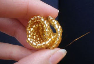 Таким же образом плетем еще четыре ряда по три, четыре, три и две бусины.
